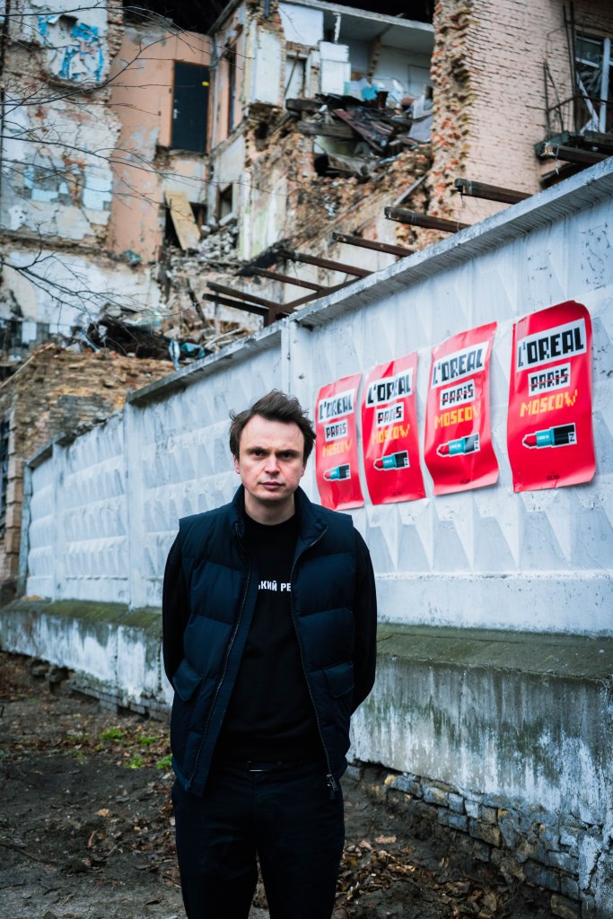 These photos with L’Oreal posters were taken in central Kyiv against the backdrop of a completely destroyed historic residential building.